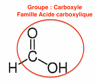 1. Recopier la formule semi-développée de l’acide formique et entourer le groupe caractéristique justifiant le terme acide dans le nom de cette espèce chimique.
