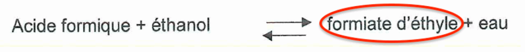 Acide formique + éthanol ⇄ formiate d’éthyle + eau