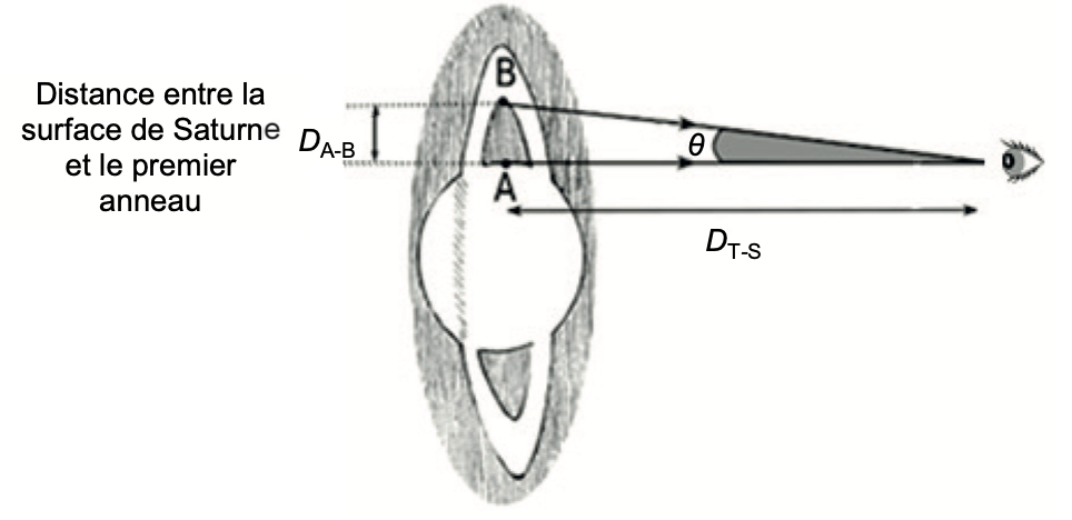 Q9. Conclure sur la possibilité pour Huygens de distinguer la surface de Saturne de son premier anneau en utilisant la lunette. La distance entre la surface de Saturne et son premier anneau est égale à DA-B = 3,17×104 km (figure 5).