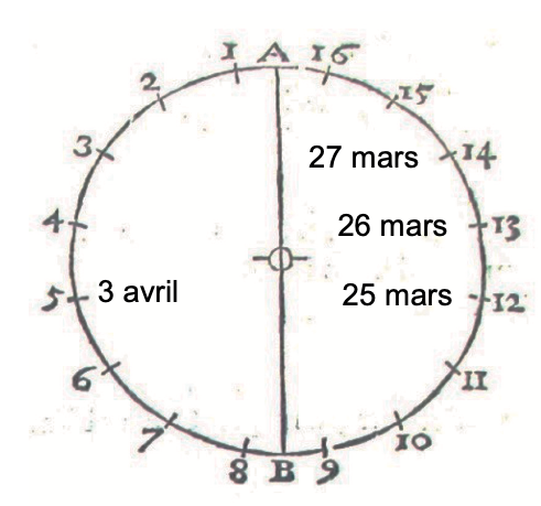 « De même, le 3 et le 19 avril de cette même année des positions identiques furent observées » : du 3 au 19 avril il y a 16 jours