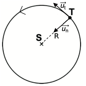 \overrightarrow{a}=\frac{v^2}{R}\overrightarrow{u}_N+\frac{dv}{dt}\overrightarrow{u}_T