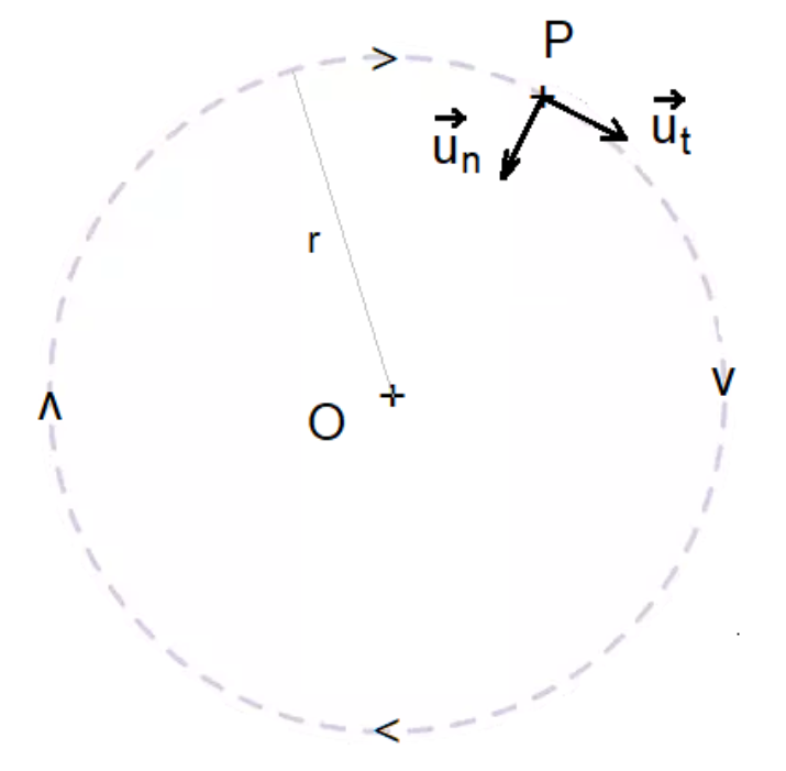 $$\overrightarrow{a}=\frac{v_p^2}{r}{\overrightarrow{u}}_N+\frac{dv}{dt}{\overrightarrow{u}}_t$$