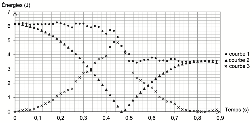 Ainsi, la courbe • (courbe 1) est celle de l’énergie mécanique.