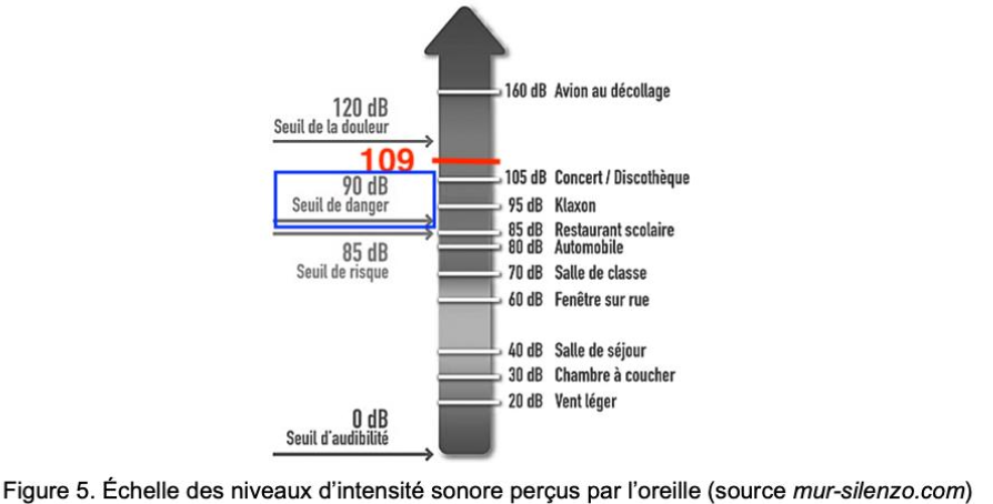 D’après la figure 5, le seuil de danger est de 90 dB.