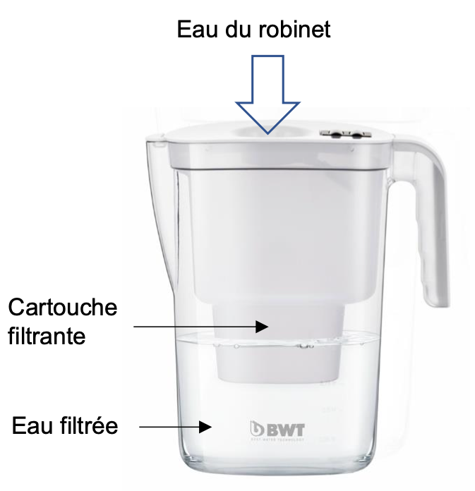 « Dans une cartouche filtrante « Edition Mg2+ », l’eau passe notamment par une résine échangeuse d’ions qui va éliminer le tartre et les métaux lourds ; les ions calcium présents dans l’eau sont alors remplacés par des ions magnésium […] »