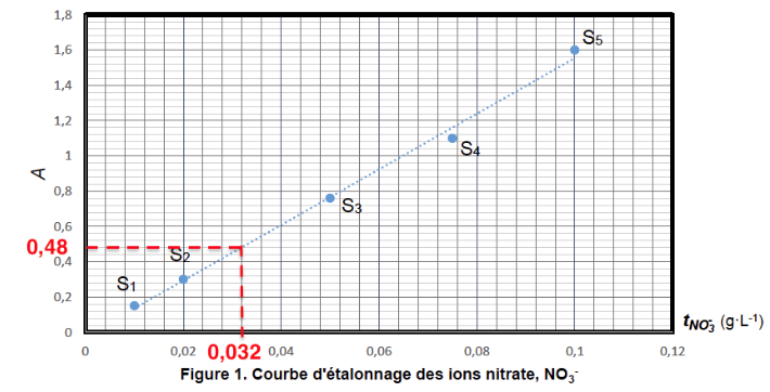 Figure 1. Courbe d’étalonnage des ions nitrate, NO3