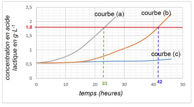 18. À l’aide du graphe de la figure 3, déterminer au bout de combien de temps les échantillons 2 et 3 ne sont plus considérés comme étant des laits frais.
