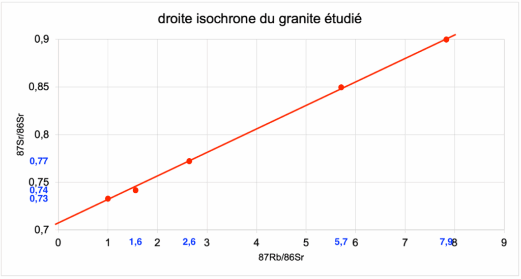 On se propose maintenant de dater un morceau de granite trouvé à la surface de la Terre avec le couple 87Rb/86Sr.