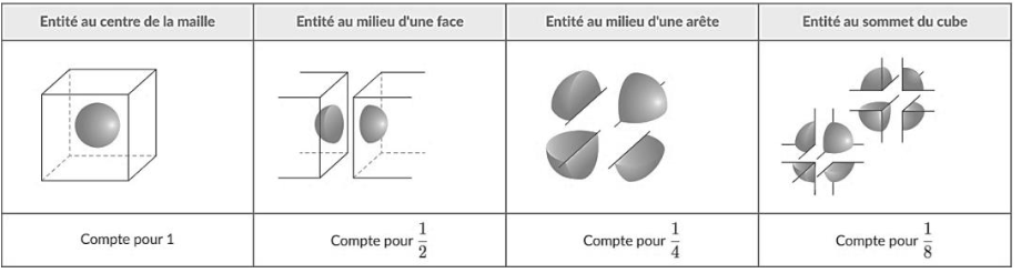 2 – Justifier l’appellation « cubique faces centrées » de la maille élémentaire représentée au document 2.