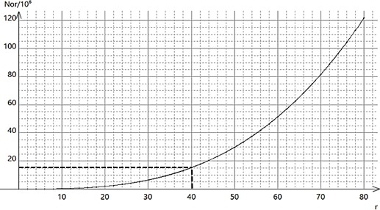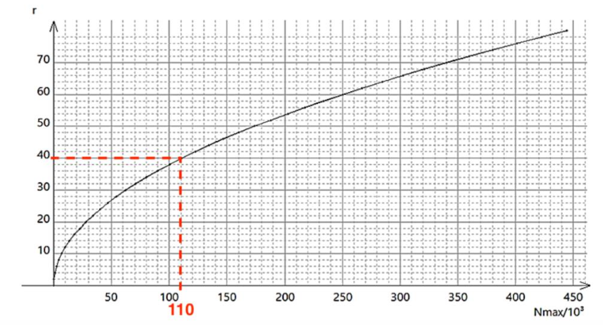 Graphique donnant le nombre d’atomes d’or Nor dans une nanoparticule en fonction de son rayon r en nm : Nor = f (r)