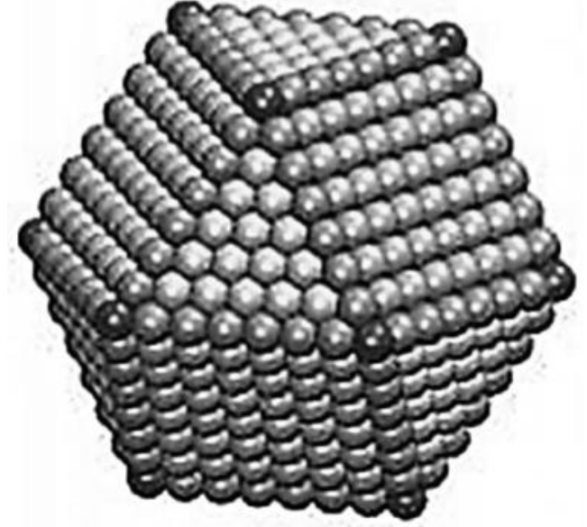 Modèle atomique simplifié du nano- objet (chaque sphère correspond à un atomed’or)