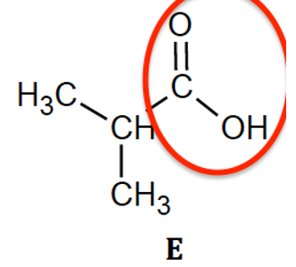 L’acide méthylpropanoïque est l’un des réactifs utilisés pour la synthèse de l’ester A, il est présent parmi les trois composés oxygénés E, F et G dont les formules semi-développées sont données ci-dessous.