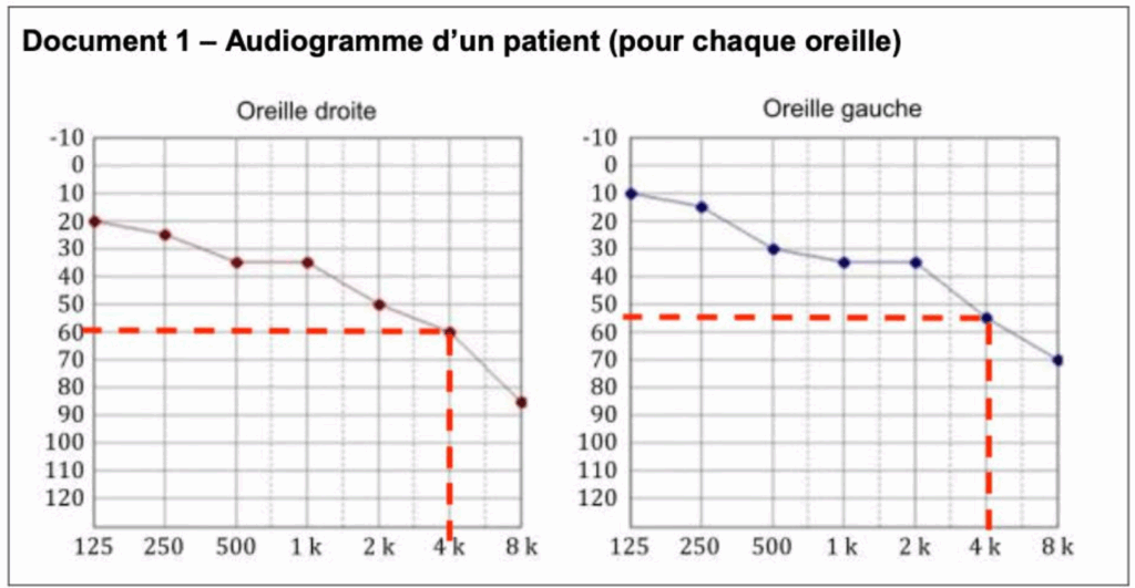Document 1 – Audiogramme d’un patient (pour chaque oreille)