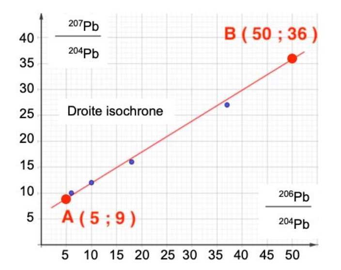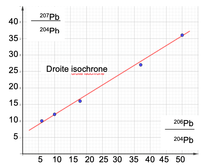 Les rapports isotopiques mesurés sur des météorites permettent de tracer une droite nommée “isochrone”.