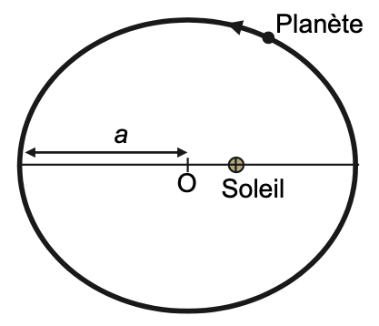 Sur la figure 1 ci-dessous, ont été représentés l’orbite elliptique d’une planète autour du Soleil ainsi que le demi-grand axe a de cette orbite.