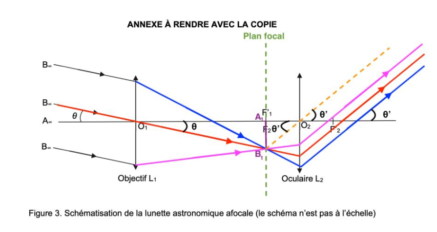 Q7. Expliquer pourquoi la figure 3 de l’ANNEXE À RENDRE AVEC LA COPIE représente une lunette astronomique afocale.