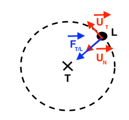 $$\overarrow{F_{T/L}}=G\times\frac{M_T\times M_L}{d_{TL}^2}\overarrow{u}_N$$