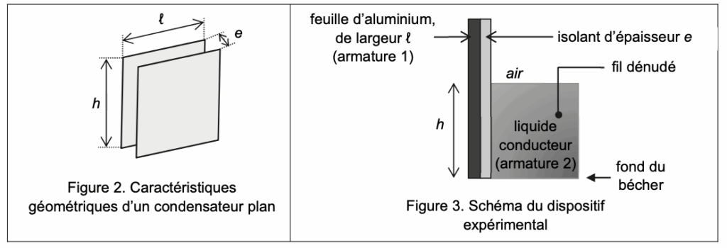 On souhaite étudier en laboratoire le principe de ce capteur et l’influence de la hauteur de liquide sur le comportement d’un tel condensateur en réalisant le montage représenté sur la figure 3 :