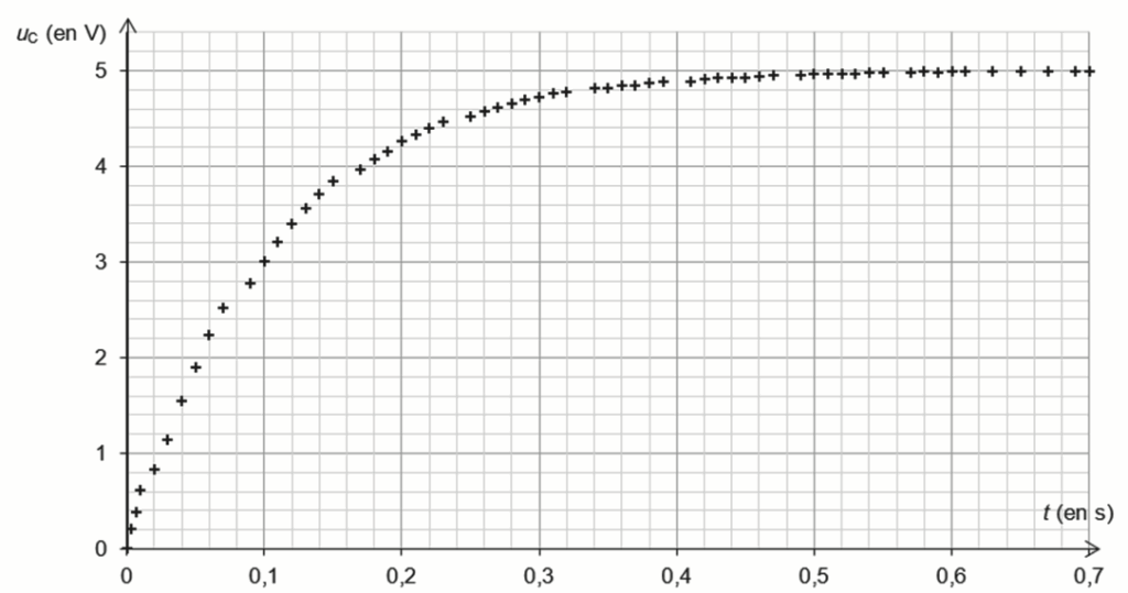 Figure 5. Évolution temporelle de la tension uC(t) aux bornes du condensateur lors de sa charge