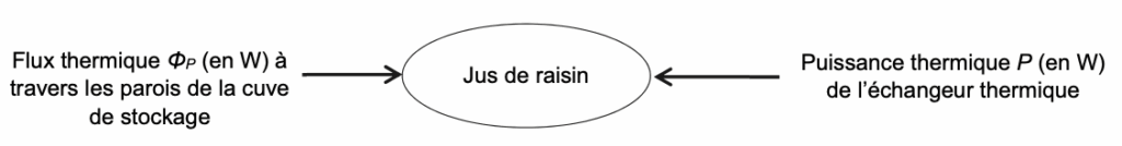 On souhaite établir le bilan énergétique du système {jus de raisin} afin de déterminer la puissance de l’échangeur thermique à utiliser.