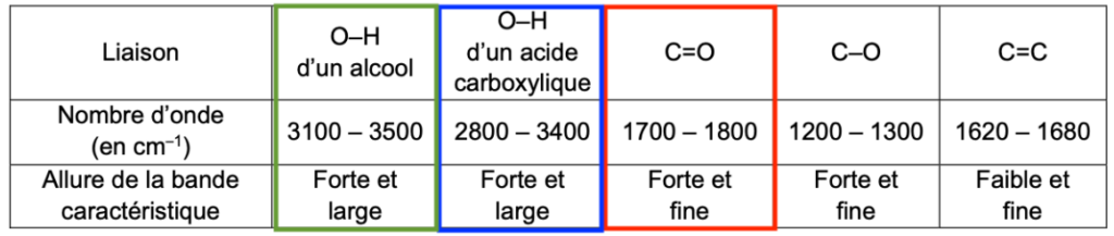 LiaisonO–H d’un alcoolO–H d’un acide carboxylique  C=O  C–O  C=C