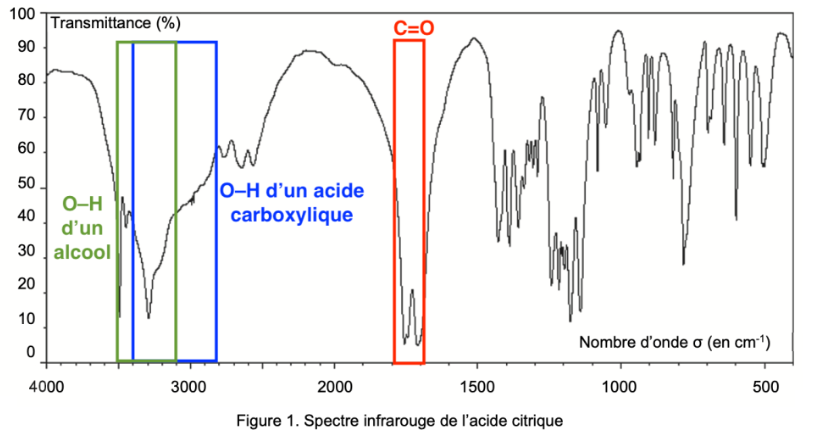 Q2. Justifier que le spectre infrarouge de la figure 1 est compatible avec la structure chimique de l’acide citrique.