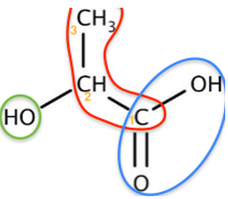 ① Dans un premier temps, on identifie la chaîne principale et le groupe caractéristique principal (cf. tableau 1) puis on numérote la chaîne pour que le carbone fonctionnel ait le plus petit indice possible.