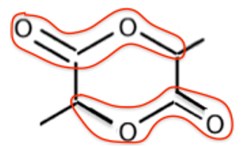 B.3. Sur cette formule topologique, entourer et nommer la fonction chimique présente dans la molécule de lactide.