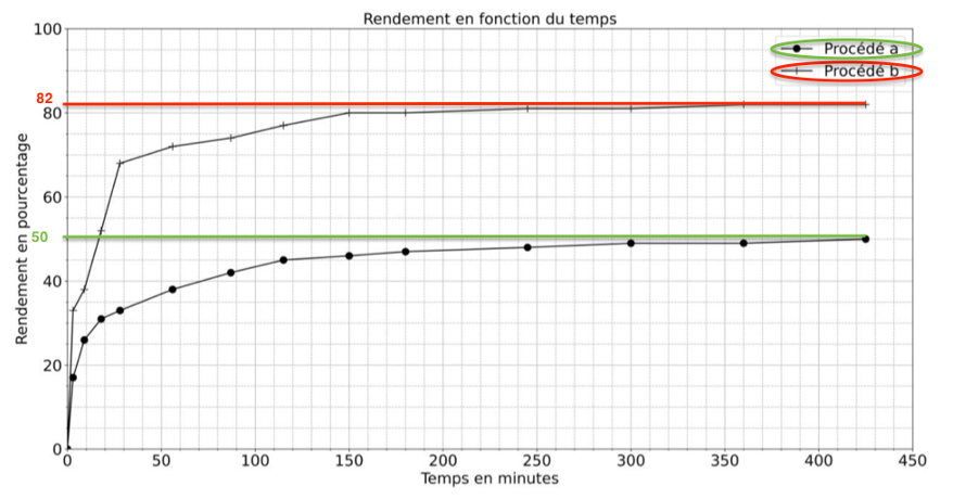 Le procédé a permet un rendement de 50% et le procédé b un rendement de 82%.