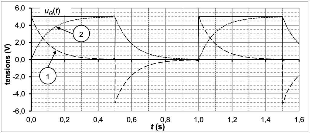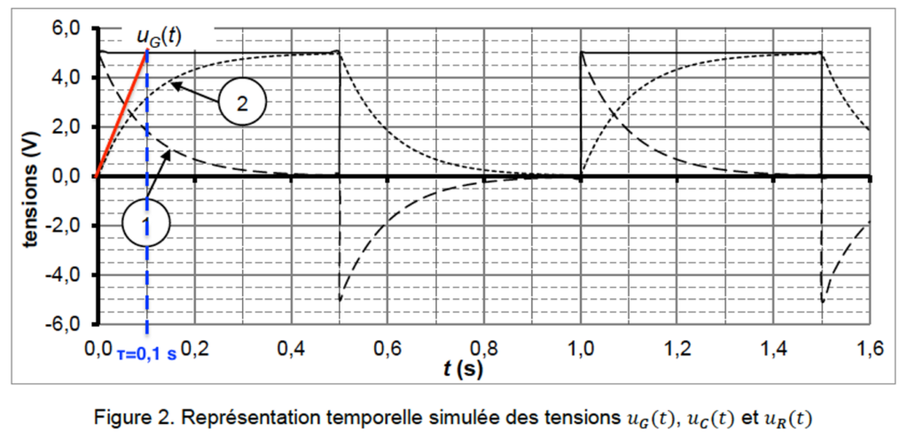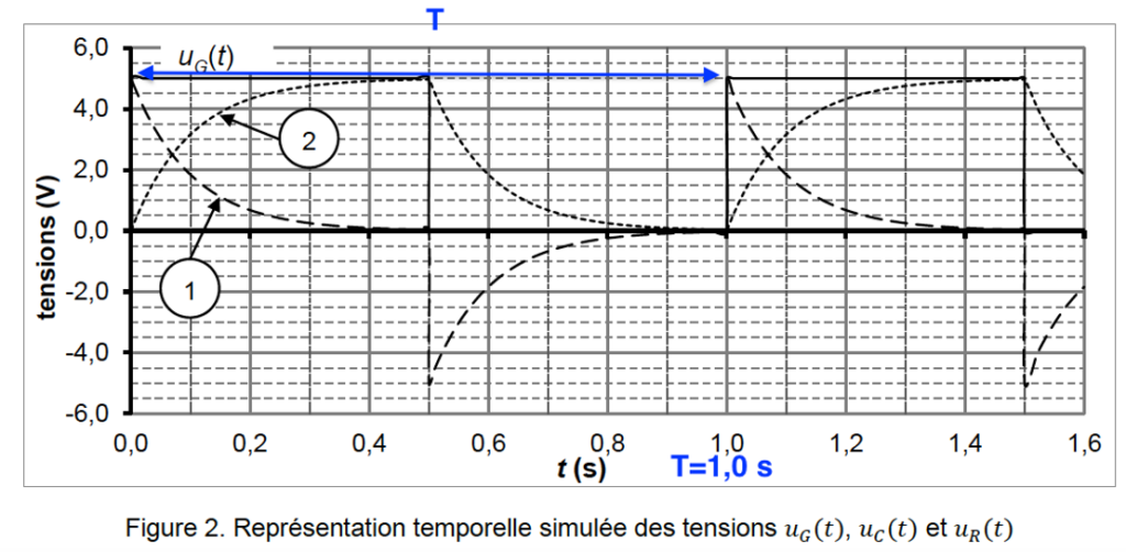 1. On s’intéresse à la réponse d’un circuit RC soumis à un signal d’entrée 𝑢𝐺(𝑡) ayant la forme d’une tension en créneaux.