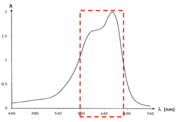 On mesure l’évolution de l’absorbance A d’une solution de bleu de méthylène pour différentes longueurs d’onde λ.