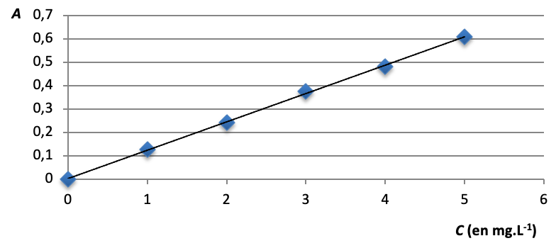 L’absorbance des solutions a été mesurée à l’aide d’un spectrophotomètre préalablement réglé sur la valeur λmax du spectre d’absorption. Les résultats sont reproduits dans le tableau ci-dessous :