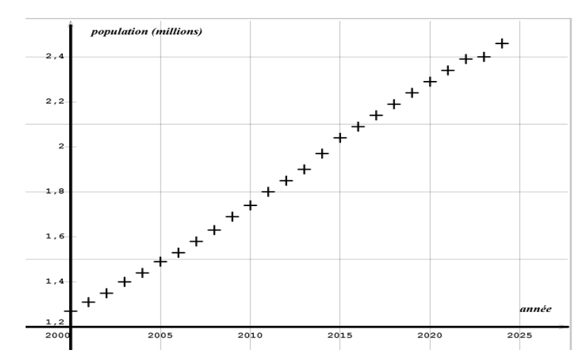 On suppose désormais que la population augmente de 50 000 habitants par an depuis l’année 2000.