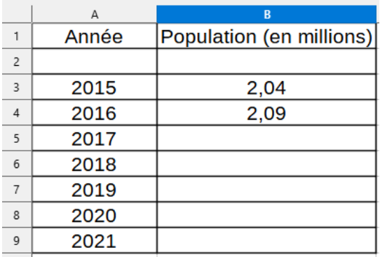 On souhaite utiliser une feuille de calcul automatisée pour prévoir l’évolution de la population du Gabon dans les années futures.