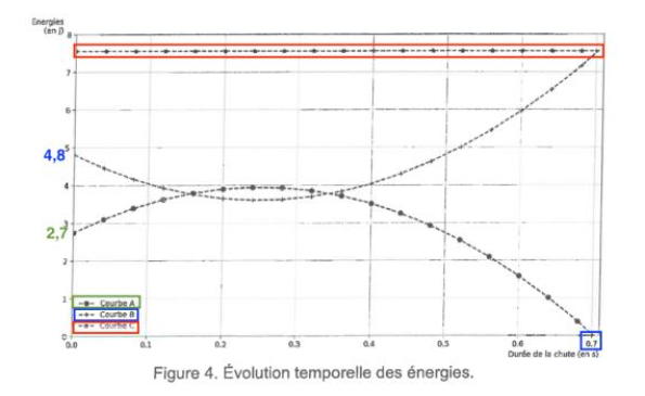 L’énergie potentielle de pesanteur initiale est de 2,7 J : Courbe A