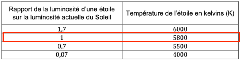 D’après l’énoncé, Il y a 4 milliards d’années, le Soleil ne brillait qu’à 70 % de son intensité actuelle.