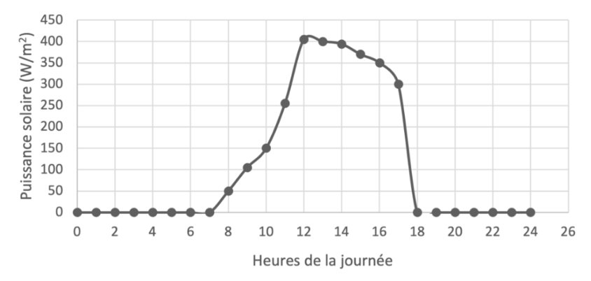 Document 3 : Puissance solaire reçue au sol, en fonction des heures de la journée