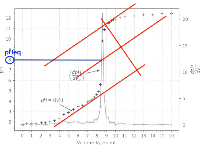 Trouvons ${\rm pH}{eq}$ à l’aide de la méthode des tangentes parallèles.