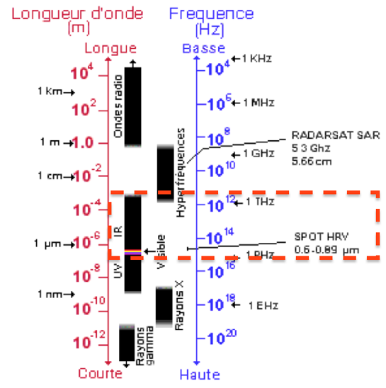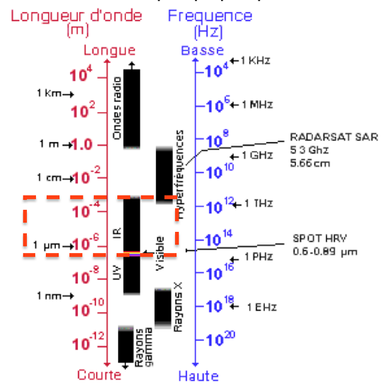 La longueur d’onde est comprise entre 10-6m et 10-4m.