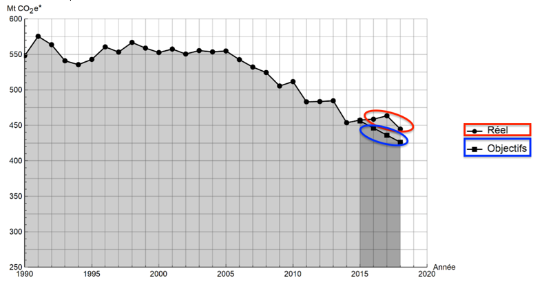 Ainsi, les objectifs sur les émissions de gaz à effet de serre n’ont pas été atteints par la France depuis 2015.