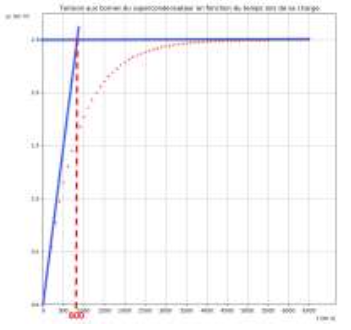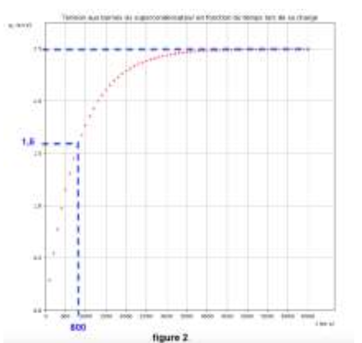 À l’aide d’une carte d’acquisition, on réalise le suivi temporel de la tension aux bornes du supercondensateur durant sa charge (figure 2 page 10/15).