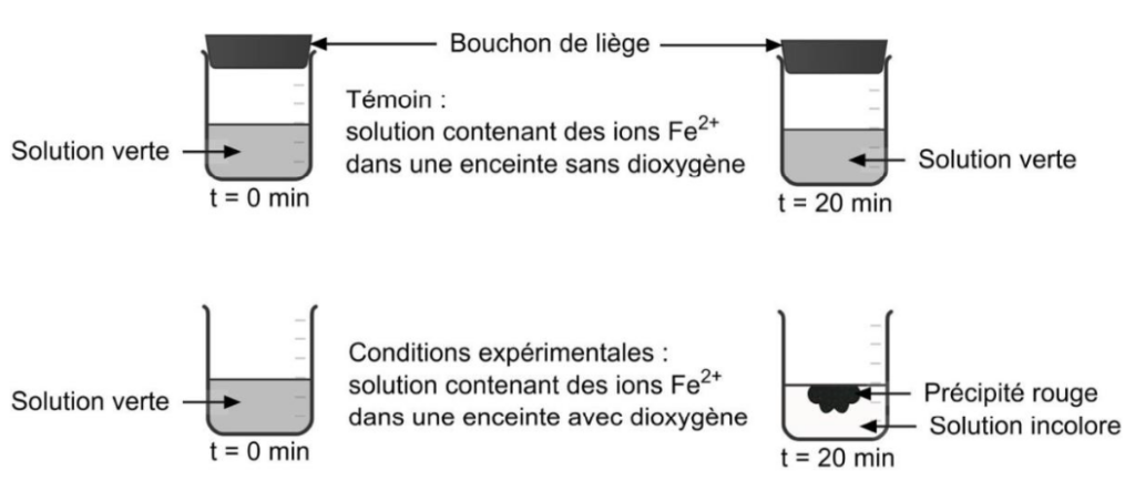 Ainsi, un précipité rouge d’hydroxyde de fer peut se former uniquement en présence de dioxygène.