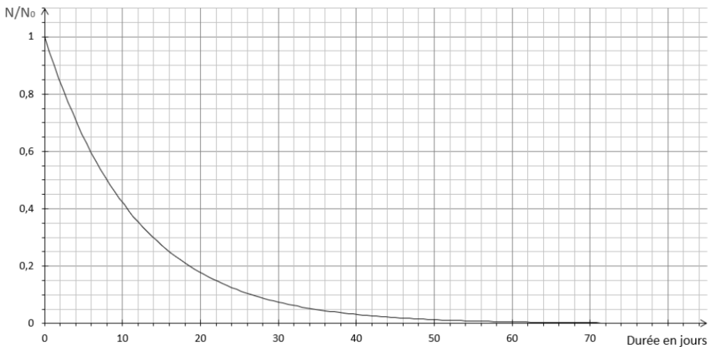 Graphiquement, au bout de 70 jours, tout l’iode 131 s’est désintégré.