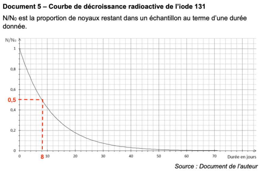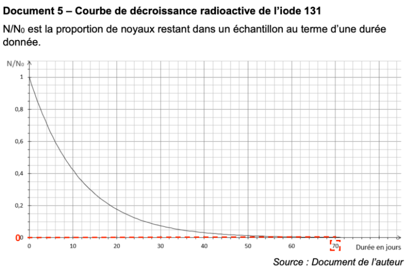 Document 5 – Courbe de décroissance radioactive de l’iode 131