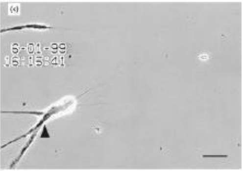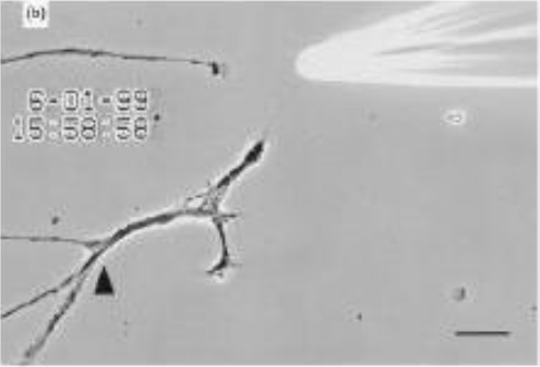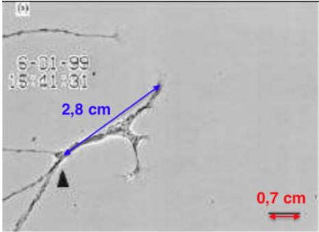 La cellule nerveuse mesure 120 μm (entre la flèche noire et l’extrémité).