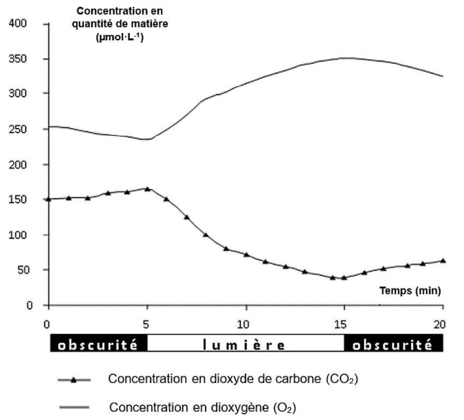 Dans ces conditions, aucun échange entre le milieu de culture et le milieu extérieur n’est possible. Les cyanobactéries sont alternativement placées à la lumière et à l’obscurité.