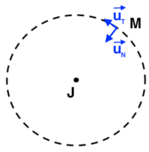 1. Représenter sur un schéma Jupiter, Métis sur son orbite supposée circulaire et les vecteurs unitaires $\overrightarrow{u_t}$ et $\overrightarrow{u_n}$ de ce repère.