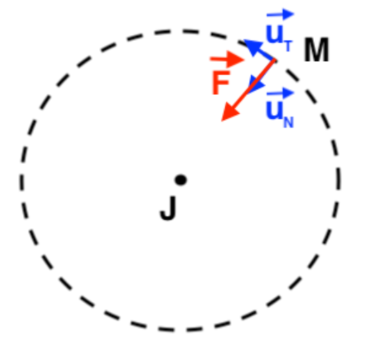 2. Donner l’expression vectorielle de la force de gravitation $\overrightarrow{F}$ exercée par Jupiter sur Métis en fonction de G, MJ, m, r et du ou des vecteurs unitaires adaptés du repère de Frenet.