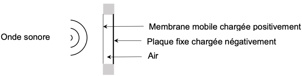 Figure 1 : Schéma de principe du capteur d’un microphone électrostatique.