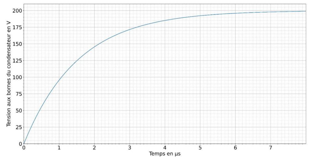 Figure 3. Évolution de la tension uC(t) aux bornes du condensateur lors de la charge en fonction du temps.